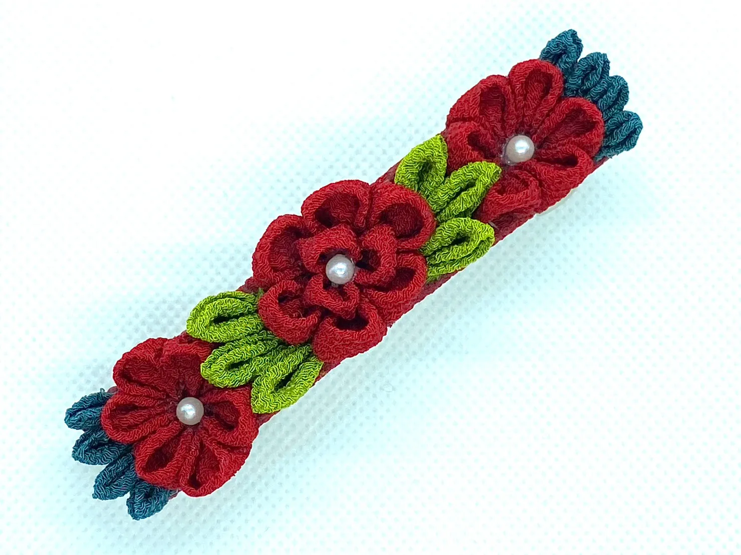 和装、洋装、どちらにも合うお花のかわいいバレッタで す。袴着用時のハーフアップヘアやショートヘアの方のワ ンポイントとしてオススメです。ちよつとおしやれしての お出かけしたい時にご利用ください。